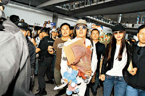 張赫戴上帽,身穿白衫白褲;全智賢則穿黑褸和牛仔褲,在昨午1時30分抵港,電影公司聘請了廿多位保安在機場護送兩人,但當他們出閘時,熱情Fans一擁而上,更突破了防線,令場面變得混亂。混亂中,張赫的Fans欲送鮮花給偶像,但卻錯手擊中全智賢的頭部,“中頭獎”的全智賢用手摸頭頂呼痛,之后一度黑口黑臉。