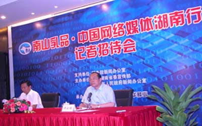 5月30日上午,湖南省副省長許云昭(右一)代表湖南省委、省政府向中國網絡媒體湖南行記者團介紹了湖南基本情況。
