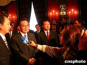 當地時間五月三十日,即將結束對保加利亞友好訪問的中國全國人大常委會委員長吳邦國在索非亞接受媒體記者的采訪。中新社記者:戴亞平