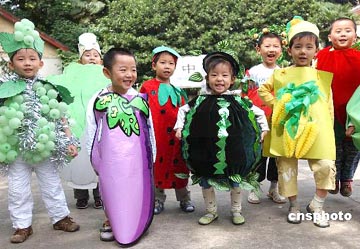 世界環(huán)保日(6月5日)前夕,5月31日,江蘇省級(jí)機(jī)關(guān)幼兒園的小朋友舉行了一場(chǎng)“寶寶環(huán)保時(shí)裝秀”,孩子們身著由自己和父母?jìng)冊(cè)O(shè)計(jì)并用廢棄材料親手制作的蔬菜水果造型服飾,向人們傳達(dá)著綠色環(huán)保理念。秦淮 攝