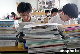 全國統(tǒng)一高考臨近,北京宏志中學的高三學生正在專心復習。北京宏志中學是二零零零年四月十日在北京第一百四十二中學的基礎(chǔ)上創(chuàng)辦的,是全國第一所專門招收家境貧困、品學兼優(yōu)學生的完全中學,也是全國最大規(guī)模的公益性學校。中新社記者:張勤