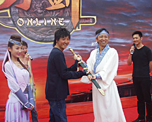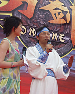 在象征著中國龍的居庸關(guān)長城腳下,上千位手持搜狐“群英帖”的嘉賓匯集一堂,儼然一場名副其實的江湖群英會。《刀劍Online》發(fā)布會以氣勢恢弘的舞龍開場,代表著《刀劍Online》將在群雄逐鹿的網(wǎng)游市場,以原汁原味的中國功夫開篇中國人自己的網(wǎng)游傳奇。“搜狐掌門人”張朝陽一身古代俠士裝扮出場,一番刀劍揮舞,顯示了不凡的武功造詣。而作為此款網(wǎng)游主題音樂代言人的內(nèi)地著名歌手孫楠則以一曲曲風(fēng)高揚,極具武俠風(fēng)格的《刀劍》將發(fā)布會氣氛推向高潮。