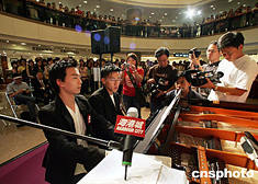 香港海港城連續數年舉辦的Music in the City音樂表演,為更多音樂人才提供了開放的表演空間,盡情發揮無窮的音樂創意。日前,新晉唱作歌手徐偉賢與鋼琴王子陳雋鶱在價值約港幣二百萬的鋼琴大顯身手,“一琴四手”彈奏出娓娓動聽旋律,現場氣氛熱烈。作者:洪少葵