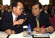 中國--東盟博覽會澳門推介會十二日在澳門舉行,廣西壯族自治區書記曹伯純與澳門中聯辦副主任李勇武在推介會上親切交談。作者:梁永強