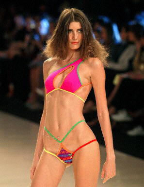6月21日,在巴西圣保羅時(shí)裝周上,模特們展示了設(shè)計(jì)師Amir Slama設(shè)計(jì)的性感比基尼。