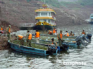 今日凌晨兩時三十分左右,記者趕到事發的黃河小浪底北碼頭,只見現場燈火通明,庫區的水面上搜救船只往來穿梭,一派緊張繁忙的景象。