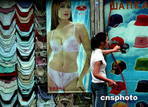 北京建國門外如今已形成多條外貿出口服飾用品街,今年夏季女性內衣布滿沿街店鋪,因其物美價廉而熱銷東歐國家。中新社記者:賈國榮