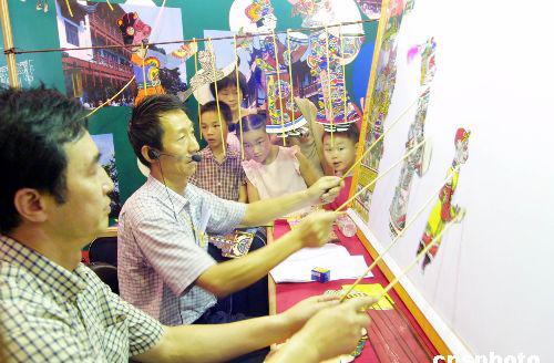 中國傳統(tǒng)“皮影戲”在兒童廟會上的亮相,引來了不少兒童好奇的目光。中新社記者:湯彥俊