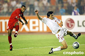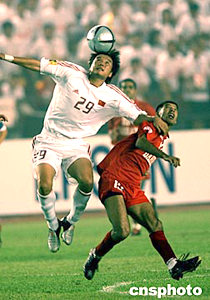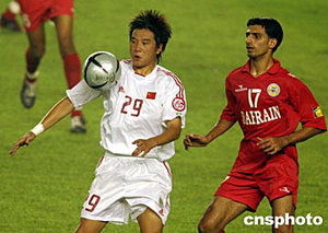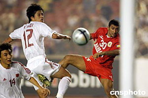 七月十七日晚,在北京工人體育場進行的亞洲杯揭幕戰中國隊對巴林隊的比賽中,巴林隊二比二戰平中國隊。