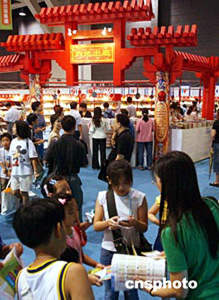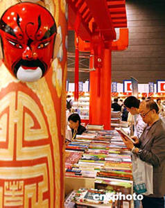 圖為富有中國傳統文化特色的內地書展攤位吸引讀者。