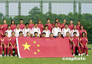 圖:女足在滬備戰(zhàn)雅典奧運拍全家福留念