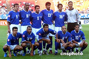二○○四年七月二十三日,亞洲杯B組比賽在濟南山東省體育中心重燃戰火,由業余球員組成的約旦隊迎戰目前小組排名第一的科威特隊。圖為科威特隊首發陣容。中新社記者:武仲林