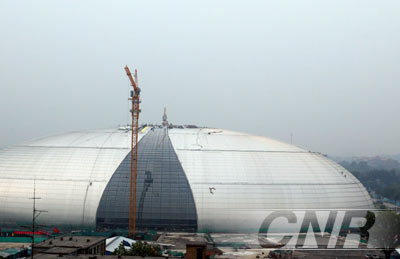 中新網(wǎng)7月28日電 經(jīng)過兩個月緊張施工,國家大劇院6687平方米的玻璃幕墻已經(jīng)全部安裝完畢。