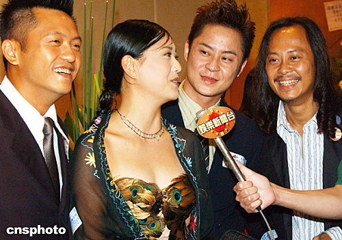 香港樂壇組合草蜢成員等,七月二十九日晚出席在香港舉行的“世界和平女神之夜”晚會。中新社傳真錢興強攝樂壇組合草蜢出席“世界和平女神之夜”晚會。香港樂壇組合草蜢成員等,七月二十九日晚出席在香港舉行的“世界和平女神之夜”晚會。中新社記者:錢興強