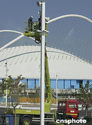 圖:雅典奧運(yùn)會(huì)主體育場(chǎng)外收尾工程