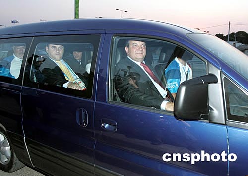 當地時間8月3日晚,希臘總理在組委會要員陪同下乘車巡視雅典奧運會賽場。中新社記者:任晨鳴