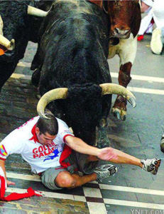 在西班牙的斗;顒(dòng)中,旁普羅納鎮(zhèn)舉辦的奔牛節(jié)是一個(gè)高潮。該項(xiàng)活動(dòng)起始于1850年,在每年的7月6日至7月14日期間舉行,每天一大早,成群的斗牛從柵欄中被放出,而大街上數(shù)以千計(jì)穿著旁普羅納傳統(tǒng)服裝的年輕男人和觀光客則冒著被牛只沖撞和踩踏的危險(xiǎn)開始在牛群前拼命奔跑,要跑一公里長(zhǎng)的路,一直跑到賽牛場(chǎng)才停止。