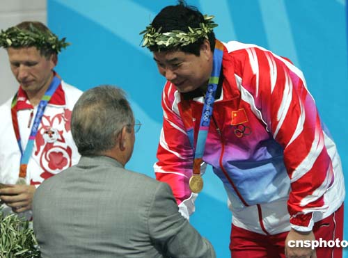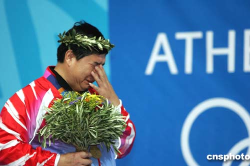 當地時間八月十四日下午,四十四歲的中國“老槍”王義夫在雅典奧運會男子十米氣手槍比賽中獲得冠軍,并為中國獲得第二枚金牌。中新社記者:任晨鳴