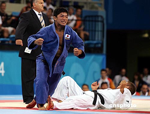 日本選手內柴正人于當地時間八月十五日在雅典獲得第二十八屆奧運會男子六十六公斤級柔道比賽冠軍。中新社記者:毛建軍
