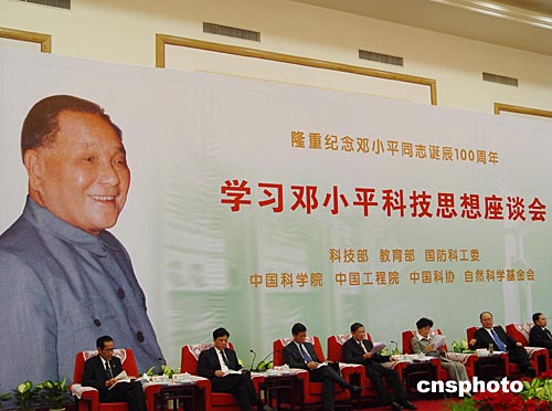八月十六日下午,中國科學技術部、教育部、國防科學技術工業委員會等七家部委級單位在北京共同舉行學習鄧小平科技思想座談會,紀念鄧小平百年誕辰。中新社記者:孫自法