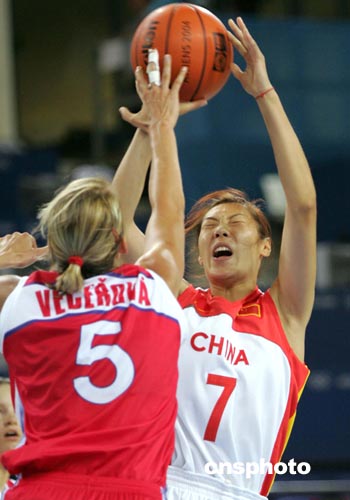下半場比賽中國隊命中率明顯下降,捷克隊哈姆佐娃內突外投,接連得分,將分差擴大為雙位數。中國隊此時有些急躁,葉莉在進攻中帶球撞人領到自己的第四次個人犯規,球隊更是雪上加霜。不久后陳楠也吃到了第四個犯規,中國隊內線開始崩塌。捷克隊七十五比六十三領先結束前三節。