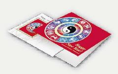 此外,還有特別的首日封設計,一款設計為純白信封,信封左側有十二生肖到齊排成一圈,喜氣的大紅色為底,12張生肖郵票圍成的圓圈中央,且有太極陰與陽的符號。另一款以中國人偏好的竹子打底,封面上左側是某一生肖的造型,十分可愛,上書Happy New Year!集郵愛好者也可買到大紅色的折疊夾,用以保護首日封或者新郵票。