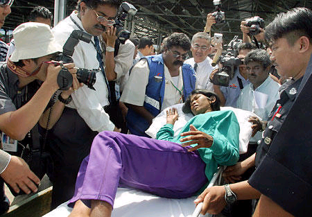 目前瑪拉瓦蒂只是足部受了點傷,沒有生命危險,而和她一起被海嘯卷走的丈夫是死是活,目前仍不得而知。(章田/雅龍)