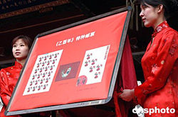 中國《乙酉年》特種郵票首發式1月5日在北京東岳廟瞻岱門前舉行。《乙酉年》特種郵票,是中國發行的第三輪生肖郵票中的第二套。在十二生肖排序中,雞象征著振奮和吉祥。中新社記者:鄒憲