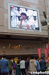有百多名內(nèi)地、香港、臺(tái)灣藝人,7日下午4時(shí)起在香港大球場(chǎng)舉行馬拉松式的《愛(ài)心無(wú)國(guó)界演藝界大匯演》,為南亞海嘯災(zāi)民籌款,將全城籌款活動(dòng)推向高潮。圖為時(shí)代廣場(chǎng)直播大匯演的情況。作者:譚達(dá)明