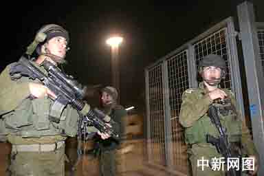 以色列士兵在位于以色列和加沙地帶之間的卡尼路口警戒。