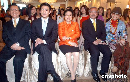 2005年度國際華裔小姐競選大會評判由陳有慶博士、歌影紅星劉德華、譚惠珠太平紳士、胡經昌太平紳士及影星葉童(左起)擔任。