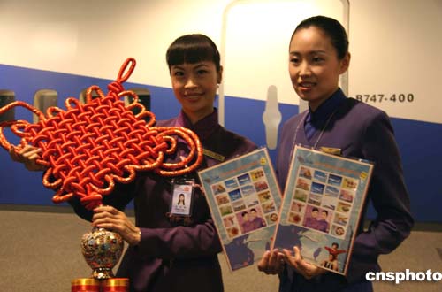 臺灣“華航”為此次首航北京春節(jié)包機活動,特別與桃園郵局合作設(shè)計了二OO五年“華航兩岸春節(jié)包機紀(jì)念郵票”。郵票中除了有“相逢自是有緣,華航以客為榮”的空服形象,另有五款“華航”目前機隊機型及此次春節(jié)包機航站圖等。它們將作為禮品贈與此次搭乘“華航”春節(jié)包機的旅客。作者:邢利宇