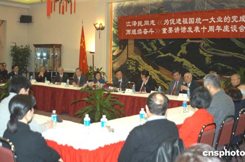 中國駐美使館1月28日舉行紀念江澤民對臺八項主張發表十周年座談會,邀請華盛頓地區華人華僑和留學生探討臺灣問題和中國統一前景。作者:余東暉