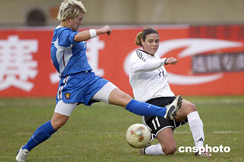圖為德國隊十一號伊薩貝爾·巴赫在進攻中巧妙騙過對方防守對員。