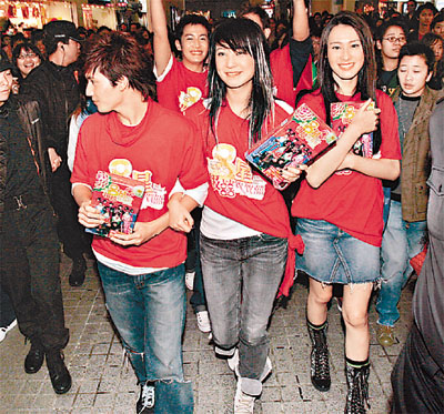 雖然Twins缺席,但五星在銅鑼灣派揮春,仍引起哄動!(圖片來源:太陽報)