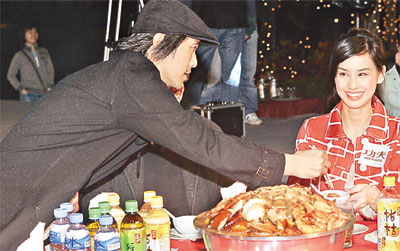 周星馳主演的電影《功夫》在各地上映均獲佳績,昨晚在奧海城露天廣場筵開八十六席名為“功夫千人群雄宴”的盆菜宴招待觀眾,好讓觀眾與他拉近距離,及與片中演員歡聚一番。而每席盆菜約花費八百多元。