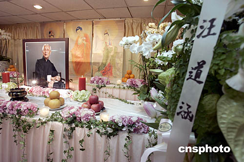 圖:辜振甫先生靈堂前擺放汪道涵先生贈送的花籃