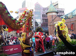 一條金龍、兩只瑞獅,3日晚從悉尼華埠的德信街一直舞到喜街的柏迪市場二樓,引得數以千計的行人駐足觀看。這是悉尼市政府舉行的慶祝中國農歷新年開幕儀式的前奏。此次為期十八天的慶祝活動,到二十日國際龍舟邀請賽才降下帷幕,內容豐富,形式多樣,多姿多彩,是悉尼市政府招攬海內外游客、增加經濟收入的重要舉措之一。作者:劉雨生