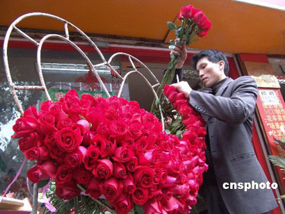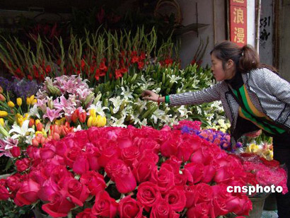2月13日,永川花店員工積極儲備玫瑰花。“情人節”將到,重慶永川市內的大小花店精心組織各品種的玫瑰花,以充足的貨源方便廣大市民挑選。作者:陳仕川
