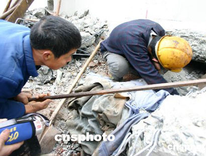 本社記者今天中午趕到事故現場看到,摔得變形的鋪軌車橫臥在地,碎裂的石梁、石塊滿布周圍,發生事故的橋墩至少有二十米高。消防人員和鐵路建設工人正努力在堆積的亂石中搜尋遇難者的遺體。部分當地村民亦加入到了救援行列中,抬著擔架隨時待命、手執鐵鍬幫助消防人員清理現場、親手刨開亂石搜尋遇難者遺體……