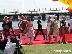 悉尼市2005年中國農歷新年慶典活動的壓軸戲——龍舟競賽,于19日和20日在達令港隆重舉行。此次龍舟競賽共有近百個龍舟隊參加,爭奪不同年齡組別的冠軍。上圖為開幕典禮上的服裝表演。下圖為龍舟隊員戲水慶祝比賽開幕.作者:劉雨生