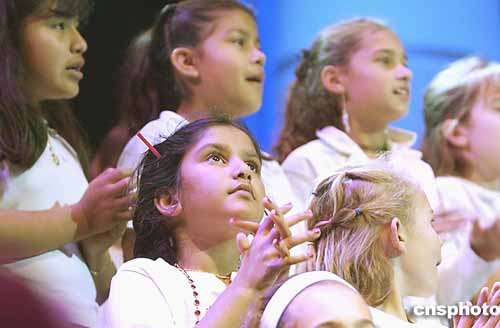 當地時間二十日晚,居于灣區的印度等各族裔的八十個團體為幫助海嘯災區賑災,在美國加州圣荷西惠普體育場舉行“萬眾一心”籌款活動,三千人參加,募得款項超過一百萬美金。圖為各族裔兒童合唱“世界兒童”。作者:陳鋼