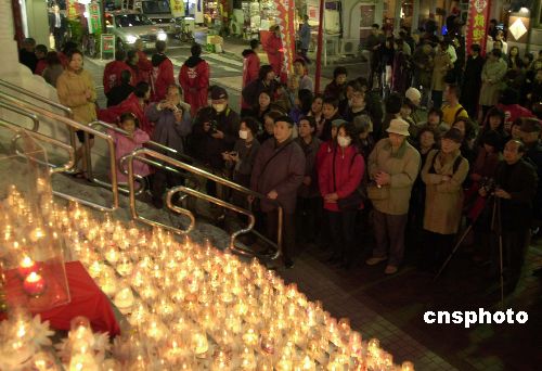 在橫濱中華街關(guān)帝廟前,當?shù)厝A人華僑正在舉行獨具特色的“元宵祭燈籠祭”:用蠟燭配上蓮花底座,做成一盞盞祥和溫馨的“祈福蓮花燈”,再在外面罩上用彩筆寫上“招財進寶”、“平安祈福”,“合和美滿”、“生意興隆”,以至“世界和平”等祈愿字樣的透明燈罩,整齊地擺放在廟前的臺階上。在近千盞帶有眾人心愿的蓮花彩燈映襯下,平日肅穆的關(guān)帝廟此時也顯得溫情脈脈,一派祥和。