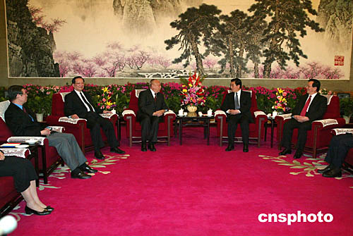 國(guó)家主席胡錦濤三月五日在北京會(huì)見(jiàn)香港特別行政區(qū)行政長(zhǎng)官董建華,國(guó)家副主席曾慶紅、國(guó)務(wù)委員唐家璇、國(guó)務(wù)院港澳辦主任廖暉等會(huì)見(jiàn)時(shí)在座。作者:滿會(huì)喬