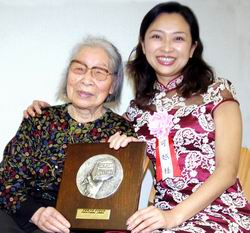 2月19日,可越和作品中的主人公——91歲高齡的八木谷老太太,一起出席了頒獎典禮。