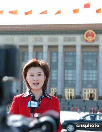 圖:美女主持人報道全國政協(xié)閉幕大會
