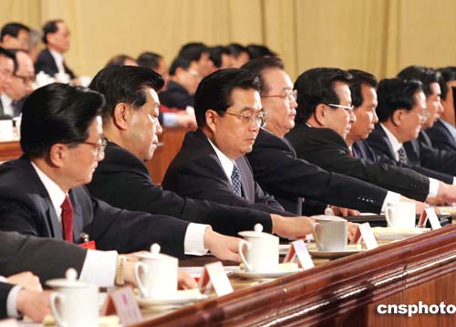 圖:胡錦濤等領導人按表決器通過反分裂國家法
