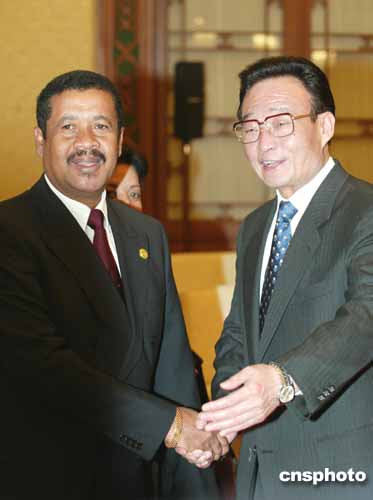 圖:吳邦國(guó)會(huì)見(jiàn)馬達(dá)加斯加國(guó)民議會(huì)議長(zhǎng)