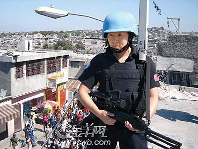 “不出門不知道想家,不出國不知道愛國。踏出國門,讓我更加體會到五星紅旗的分量,到海地維和,是我無悔的選擇。”25歲的北京女孩賀巍,說出了13朵警花共同的心聲。