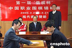 首屆“倡棋杯”職業(yè)圍棋錦標(biāo)賽決賽三月二十七日在上海應(yīng)氏圍棋基金會(huì)進(jìn)行,由孔杰七段(右)對(duì)陣王磊八段(左),應(yīng)昌期圍棋教育基金會(huì)董事長(zhǎng)應(yīng)明皓親自擔(dān)任裁判長(zhǎng)。作者:湯彥俊